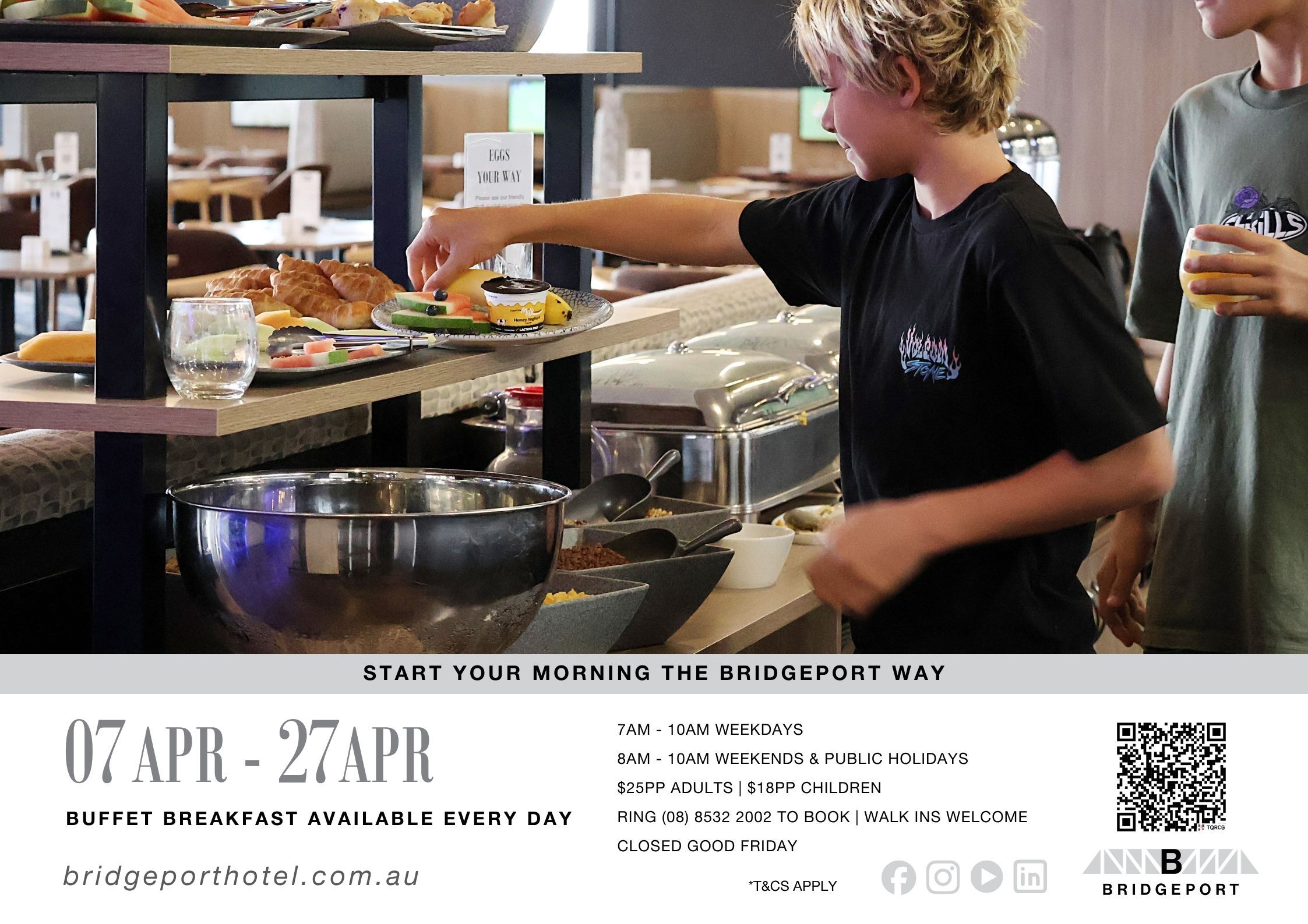 WEEKEND & PUBLIC HOLIDAY’S BREAKFAST is buffet for $25pp